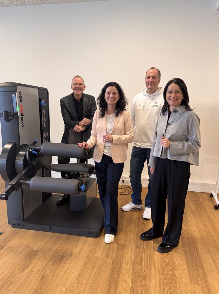 Prävention, Pflege und Gesundheitsbildung standen im Mittelpunkt des Austausches der SPD-Landtagskandidatin Daniela Steinrode mit der Geschäftsführung der AOK Nordschwarzwald. „Wir übernehmen Verantwortung, mischen uns ein, wenn es um Arzneimittelverträge, Versorgungsstrukturen oder die Zukunft der Pflege geht“, betont AOK-Geschäftsführer Claus Bannert. Dazu gehören auch neue Wege in der Gesundheitsbildung. „Um die Gesundheitskompetenz von klein auf zu stärken, setzen wir uns dafür ein, dass umfassende Gesundheitsbildung verbindlicher Bestandteil der Lehrpläne wird“, so Bannert. Steinrode begrüßte den Ansatz ausdrücklich und verwies auf notwendige Anpassungen im Bildungsplan der Schulen: „Wenn wir ein lebenslanges Bewusstsein für Gesundheitsthemen erreichen wollen, dann müssen wir frühzeitig dafür sensibilisieren.“ Ein besonderes Augenmerk legten die Gesprächspartner auf die Pflege. „Pflegende stehen oft allein da und haben keine Lobby“, erklärte Evelyn Scheib, stellvertretende Geschäftsführerin der AOK Nordschwarzwald. „Hier Verantwortung zu übernehmen, ist für uns keine Zusatzaufgabe, sondern Teil unseres Selbstverständnisses.“ Das Projekt „Helden des Alltags“ wurde von der AOK Nordschwarzwald initiiert, um im Austausch mit pflegenden Angehörige Lösungen zu finden. Die Geschäftsführenden fordern sowohl im Bereich Gesundheit als auch im Bereich Pflege eine koordinierte, effiziente und digital unterstützte Versorgung mit hoher Qualität zu bezahlbaren Kosten. Wie Prävention gelingt, erfuhr Daniela Steinrode bei einer Führung durch das Gesundheitszentrum in Nagold. AOK-GesundheitsCoach Thomas Steidle stellte das umfangreiche Kursangebot und die verschiedenen Konzepte für gerätegestütztes Training vor. Damit kann gezielt auf die individuellen Bedürfnisse eingegangen werden, um mehr gesunde Lebensjahre zu ermöglich. „Gesundheitsbewusstsein entsteht nicht durch einmalige Impulse. Deshalb begleiten wir beim Einstieg in eine gesündere Lebensweise“, schildert Steidle. Zum Abschluss machte Steinrode deutlich: „Flächendeckende Pflege, wohnortnahe Gesundheitsversorgung und gute Arbeitsbedingungen für Fachkräfte sind entscheidend für die Zukunft und die Lebensqualität im ländlichen Raum, insbesondere in unserer Region.
